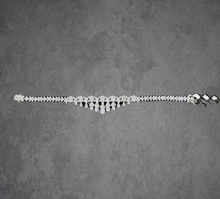 Pirinç üzerine beyaz altın kaplama, 3A kalite zirkon taş mıhlamalı , kutu kapamalı ithal bileklik.