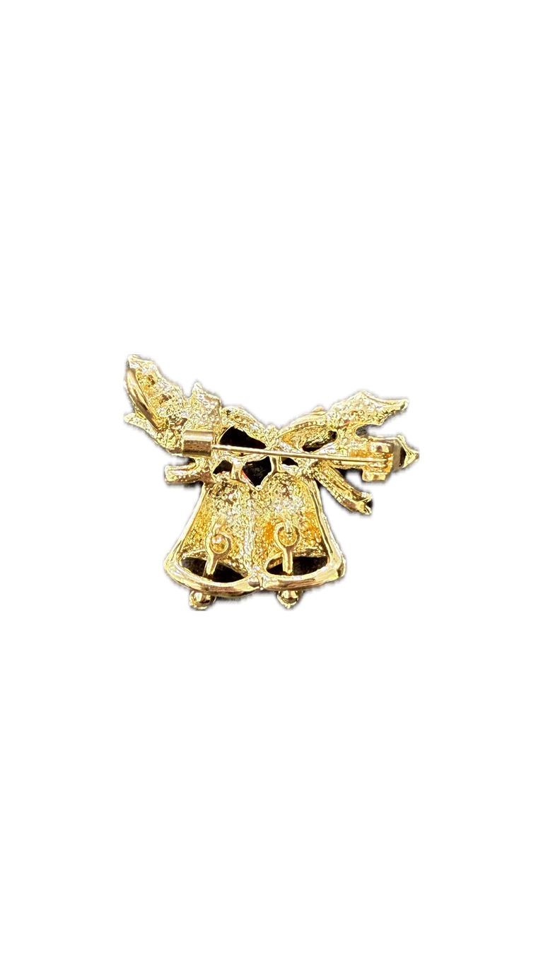 Pirinç üzerine altın kaplama, mine ile renklendirilmiş, parlak taşlı, iğne kapamalı broş.