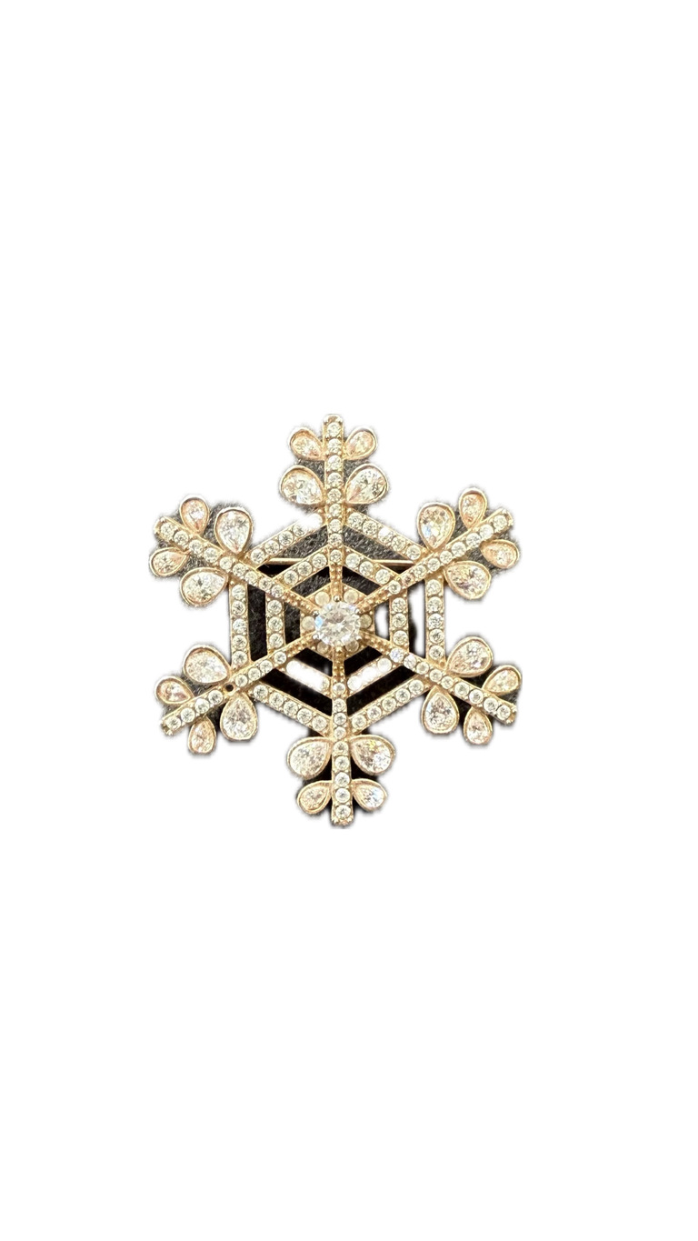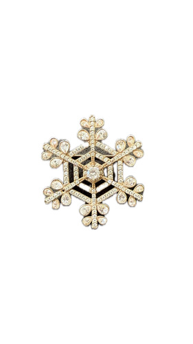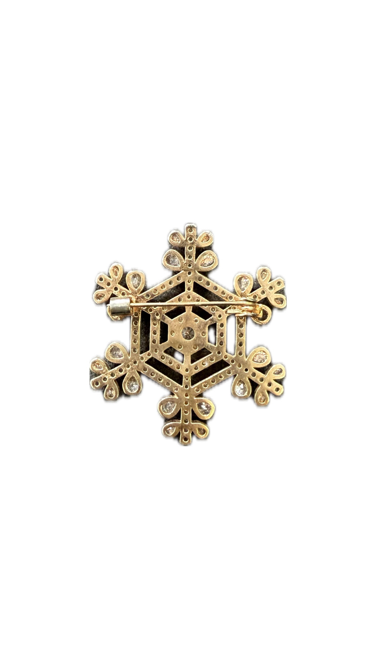 Pirinç üzerine altın kaplama, parlak taşlı, iğne kapamalı broş.