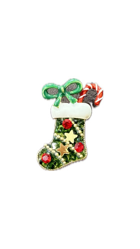 Pirinç üzerine altın kaplama, mine ile renklendirilmiş, parlak taşlı, iğne kapamalı broş.
