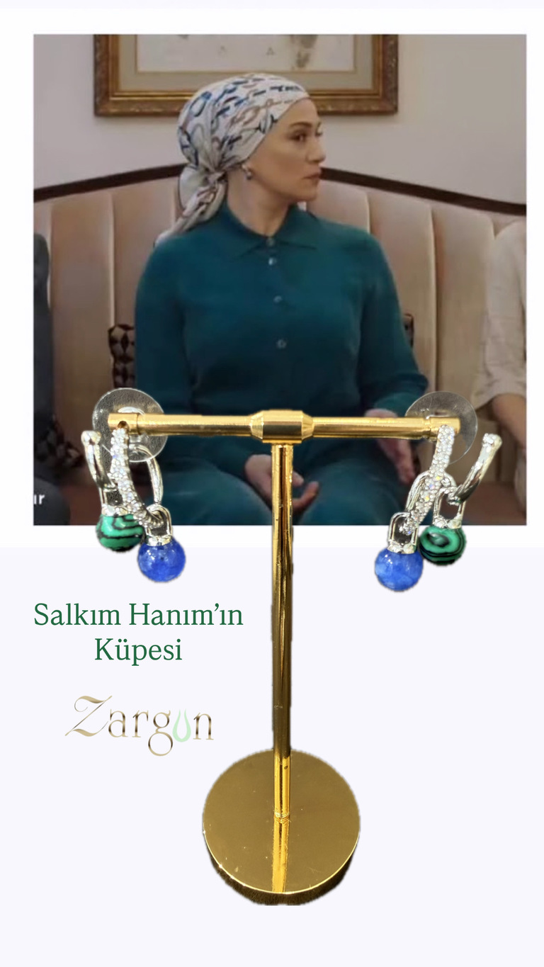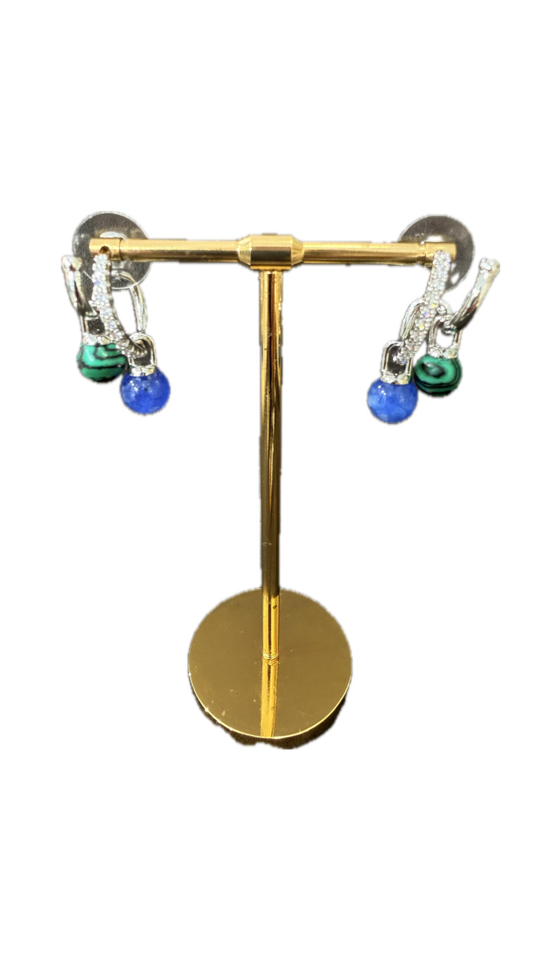 Pirinç üzerine beyaz altın kaplamalı, zirkon taş mıhlamalı, pimli ithal bijuteri küpe
