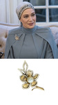 Bronz üzerine svarovski taş ve suni inci ile süslenmiş iğne kapamalı broş