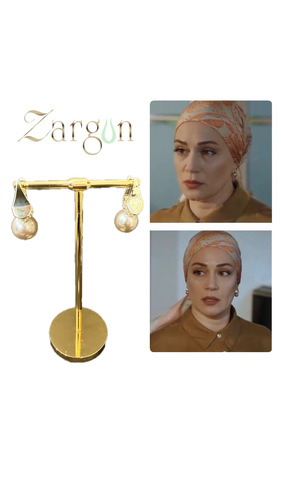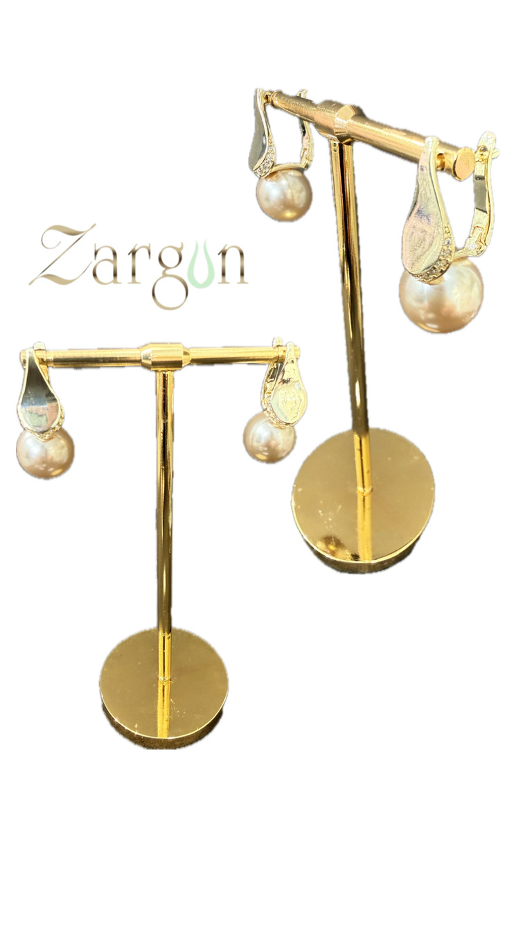 Pirinç üzerine altın kaplamalı, suni inci süslemeli , iğne kapamalı küpe.