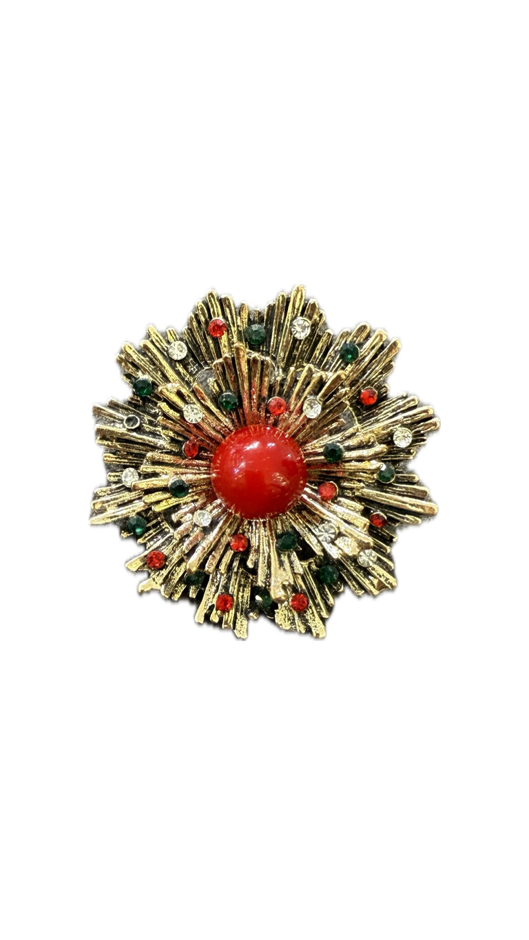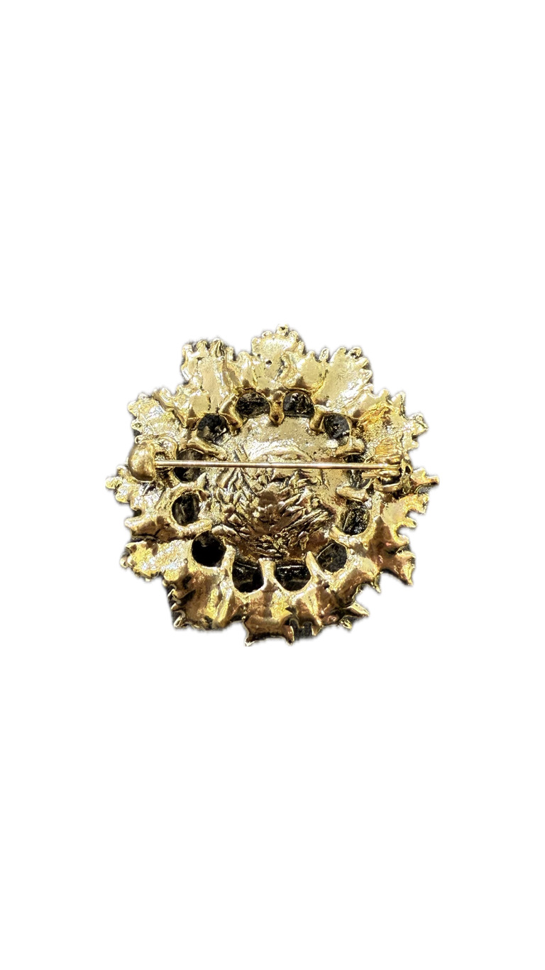Pirinç üzerine altın kaplama, parlak taşlı, iğne kapamalı broş.